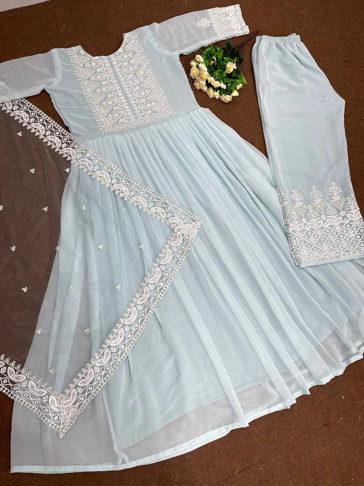 -70%Attractive Sky Blue Color Anarkali Top With Palazzo—