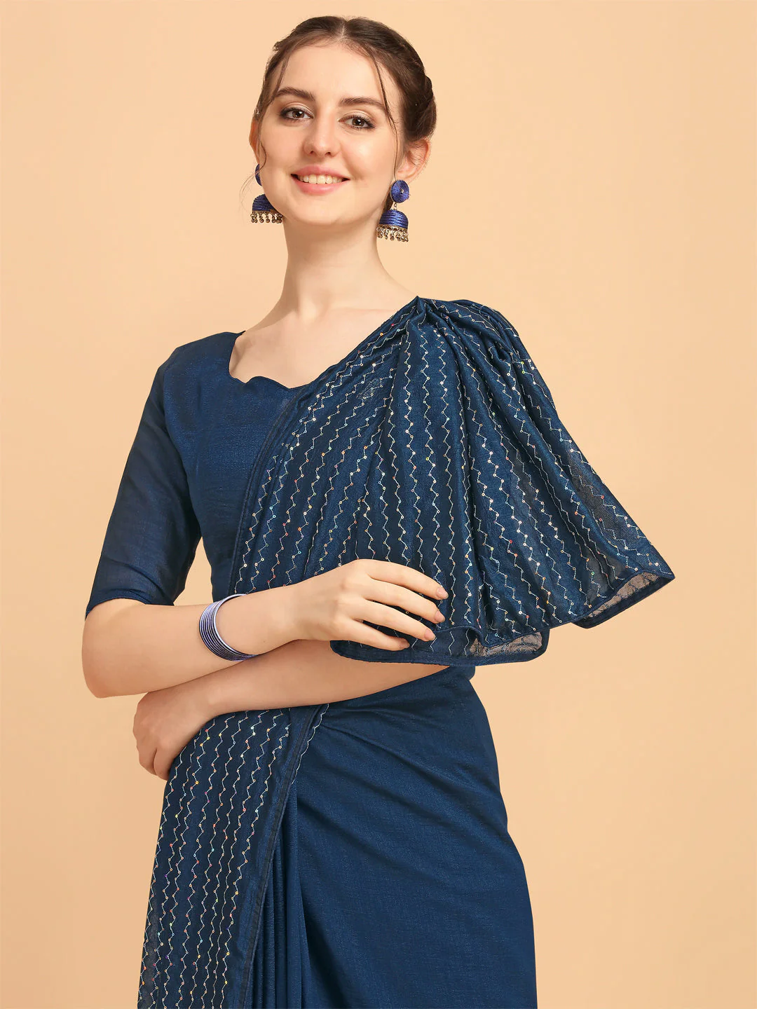 -70%Blue Color Vichitra Blooming Sequence Saree—