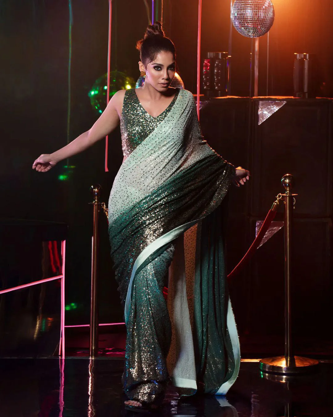 Double Tone Sequence Work Green Color Saree—