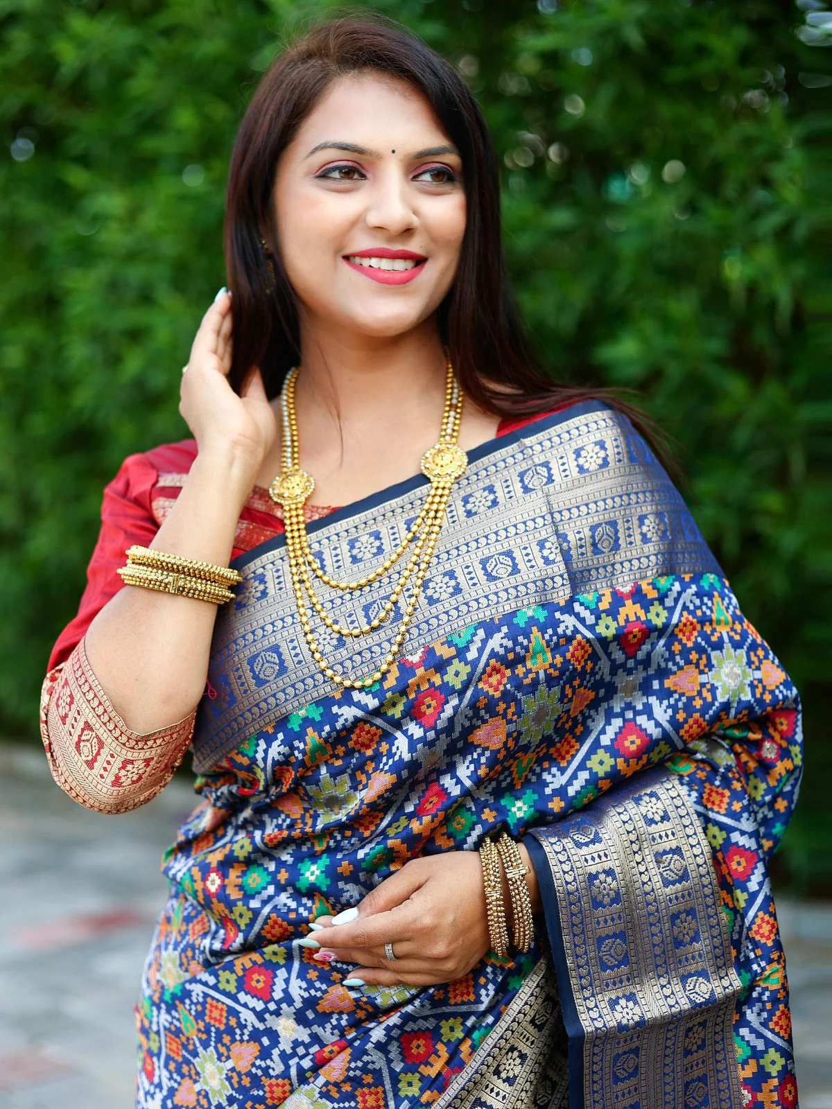 Fashionable Navy Blue Color All Over Zari Patola Weaving Saree