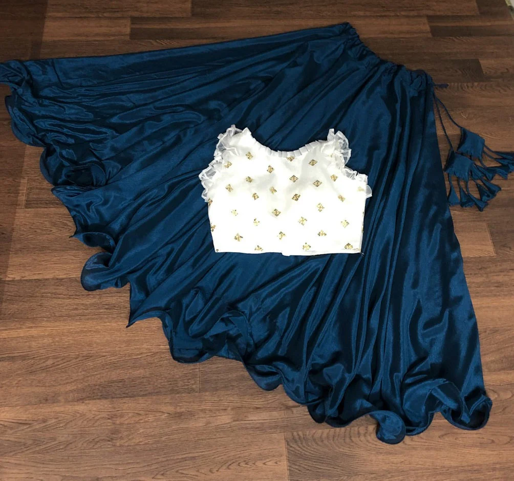 Party Wear Navy Blue Color Lehenga With Work Blouse