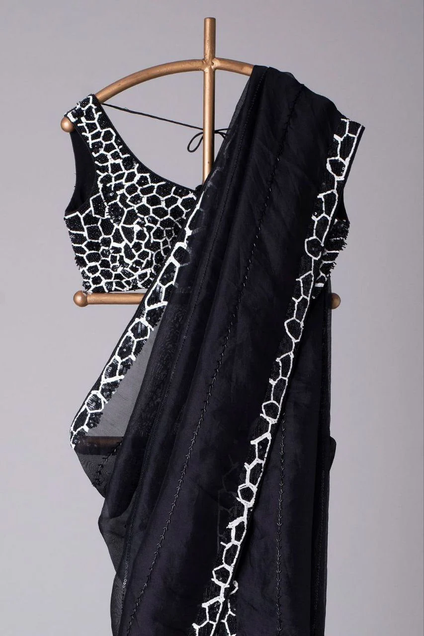 | Saree Work | Embroidery Sequins Work With Lace Border |