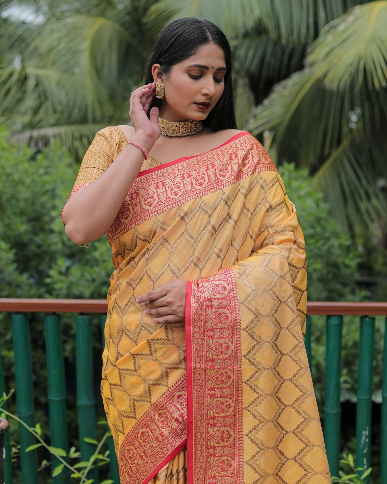 | Blouse | Banarasi Gold Zari Patti Pattern (Image Shown) |